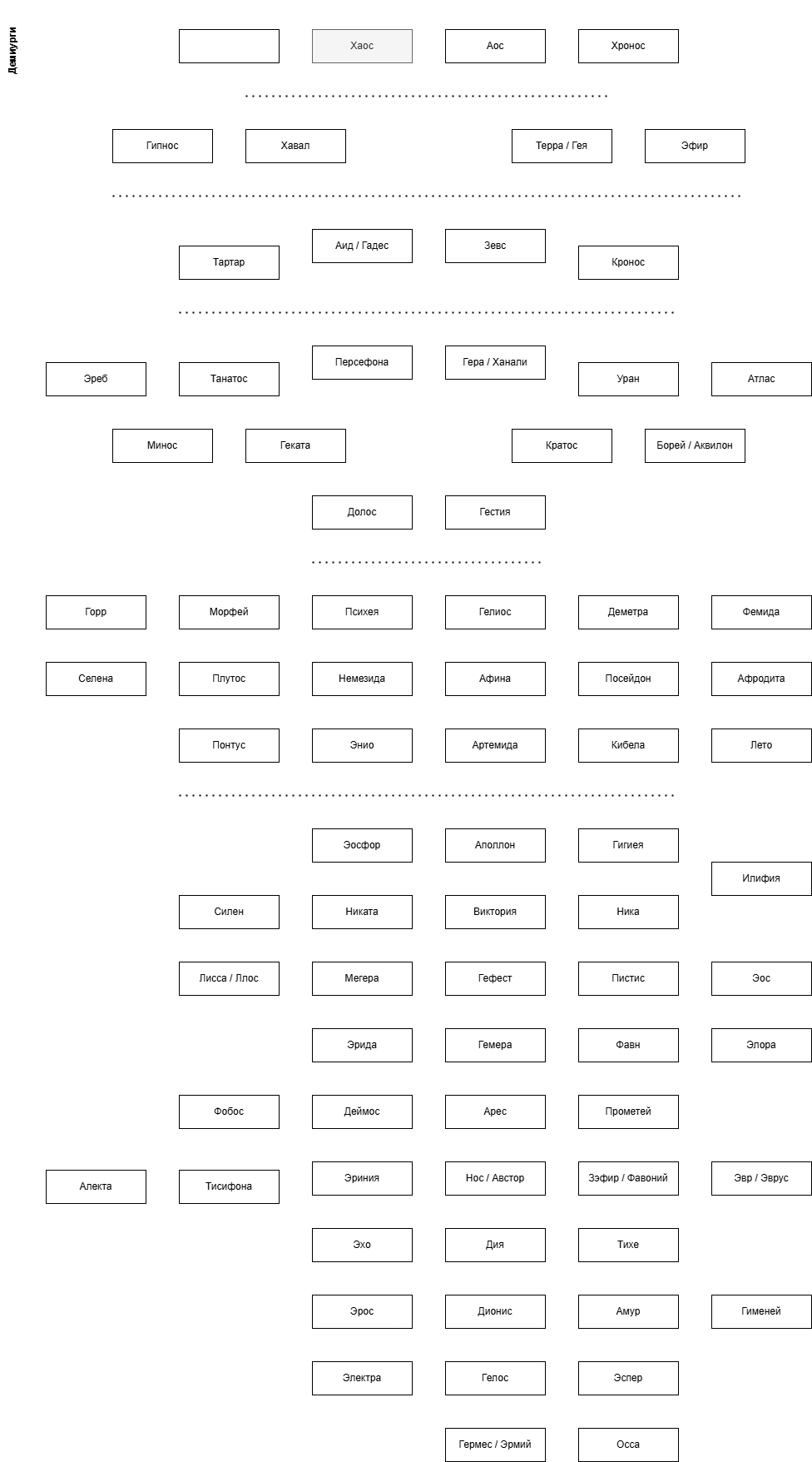 | Танатос | Мор | Некрос | Кащей | - | Сет |